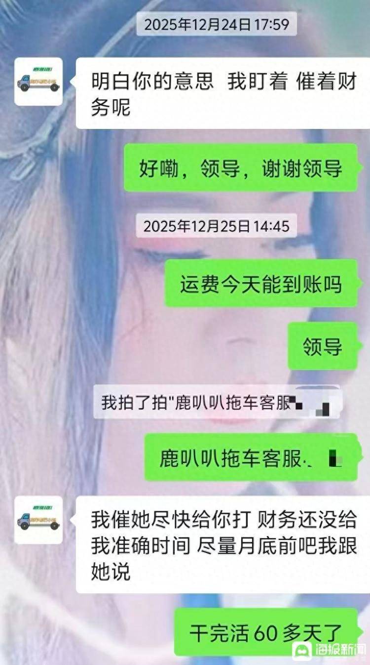 1月5日,货车司机王先生向海报新闻记者反映,自己被鹿叭叭拖车平台拖欠运费和押金共计3000多元。